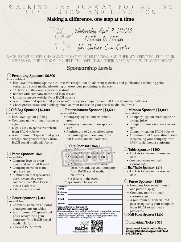 Help us create brighter futures for children in Brazoria County by Walking the Runway for Autism with us!